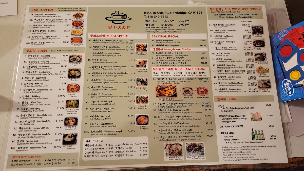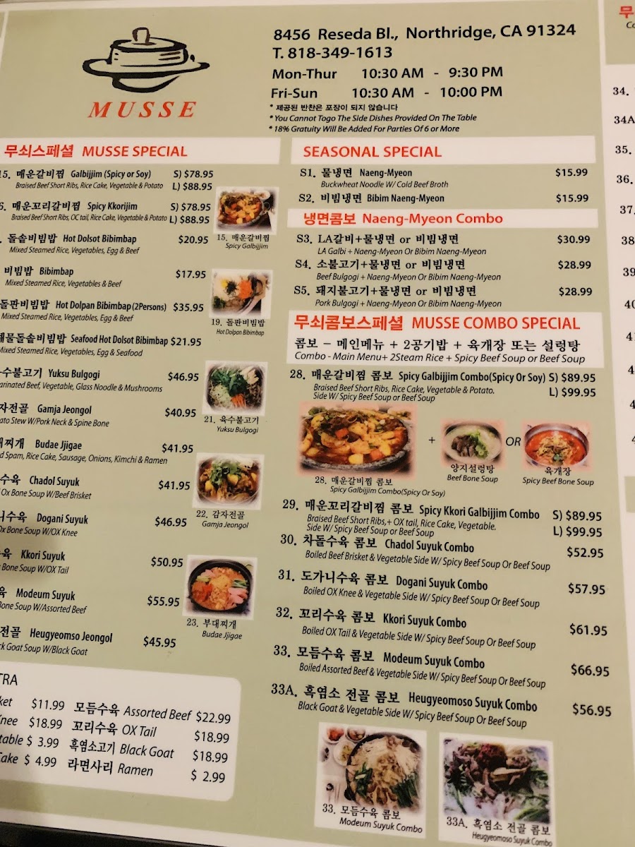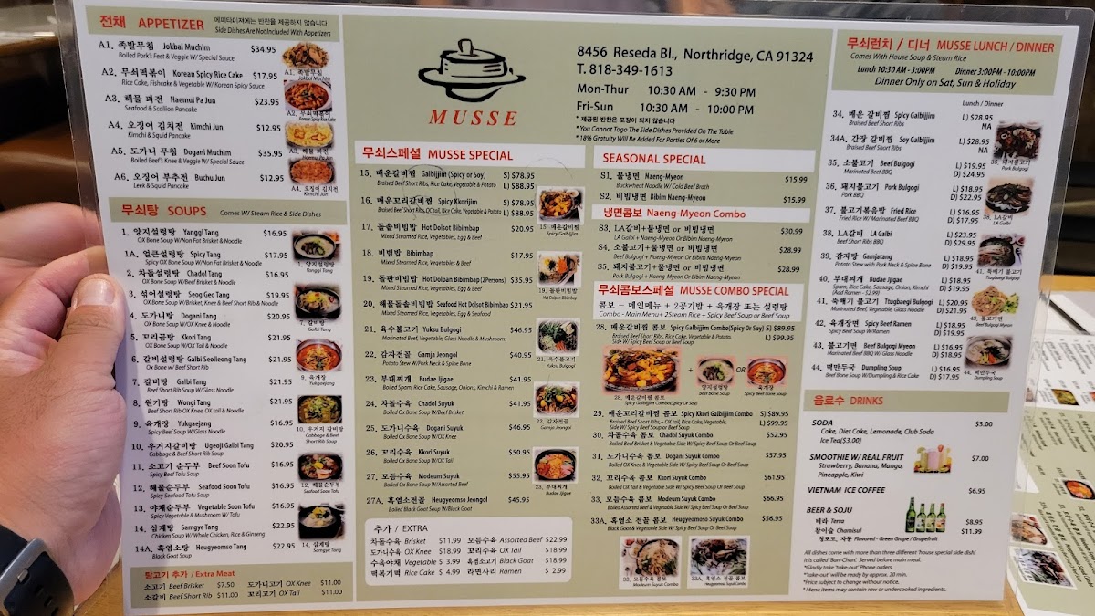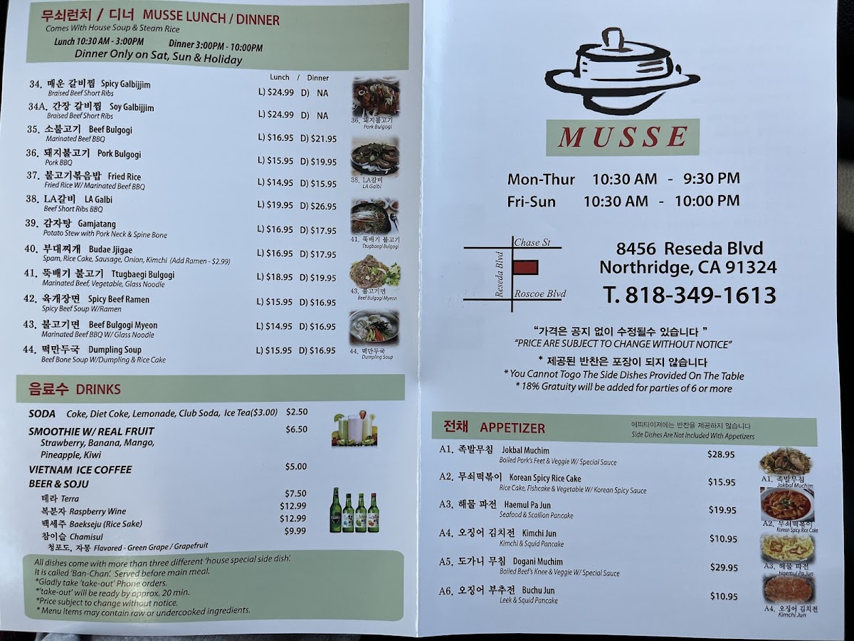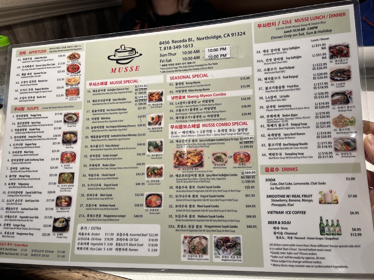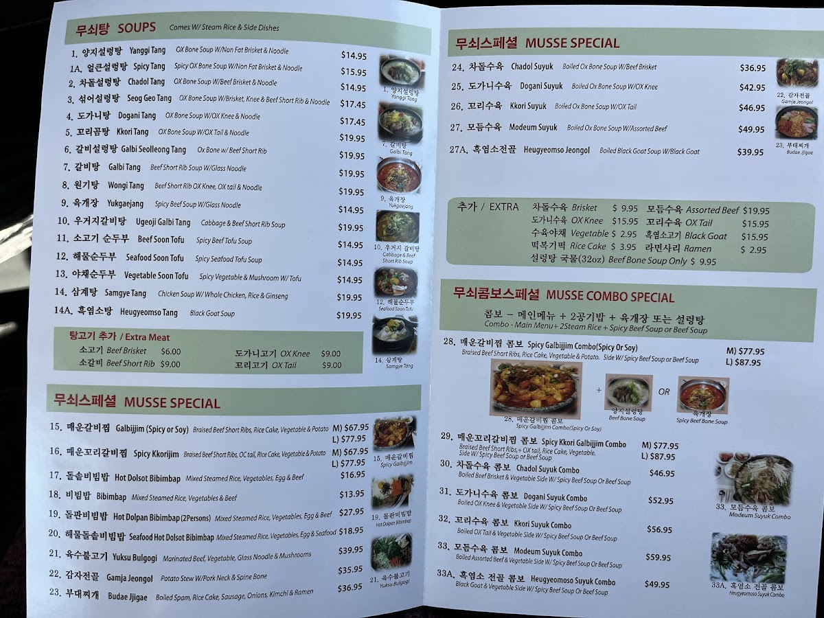 The menu at Musse offers a balanced selection of traditional Korean dishes that feel both familiar and satisfying. It’s the kind of place where you can enjoy comforting bowls like Hot Dolsot Bibimbap or warming stews such as Chadol Tang and Soon Tofu Soup. The menu leans toward hearty, well-prepared meals that work equally well for a relaxed lunch or a casual dinner with friends or family.